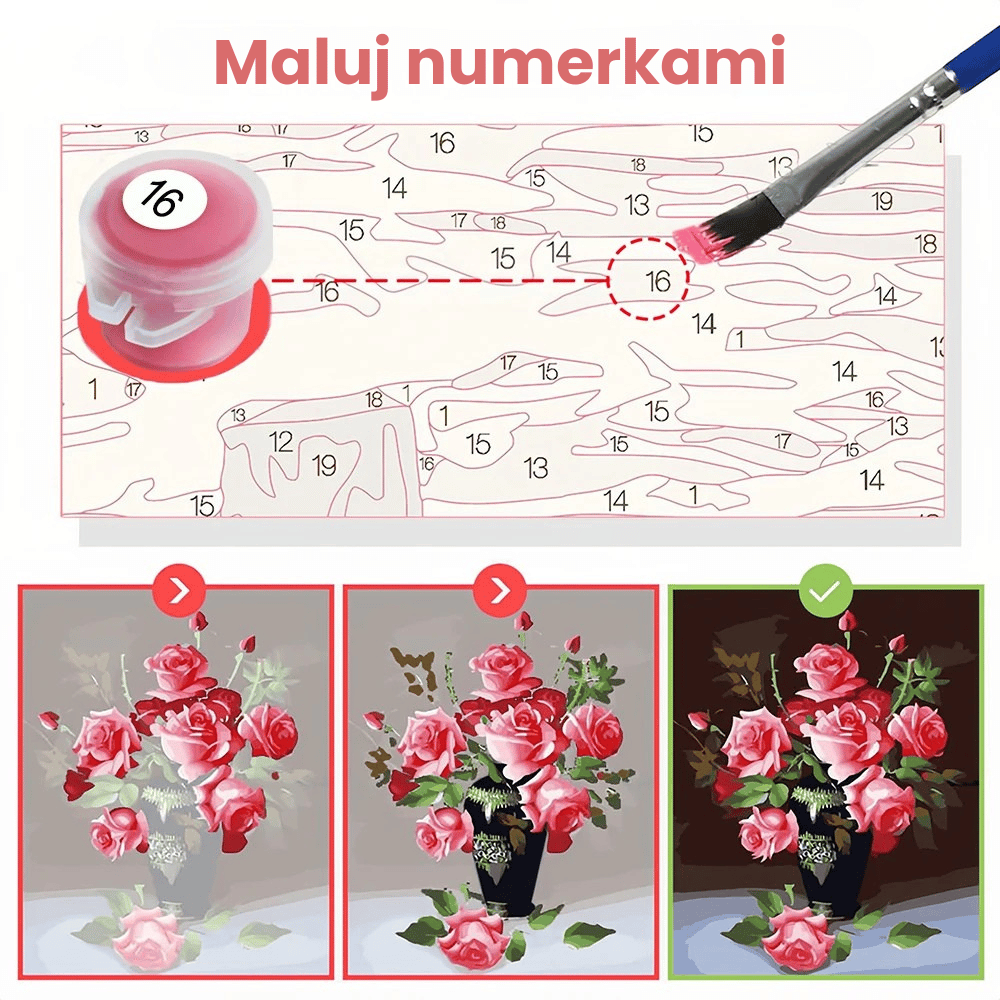 Każdy numer na płótnie odpowiada określonemu kolorowi farby — wystarczy podążać za wzorem, by krok po kroku stworzyć magiczny obraz pełen barw i uroku. Idealny dla dzieci, dorosłych i wszystkich, którzy kochają kreatywne zajęcia ✨