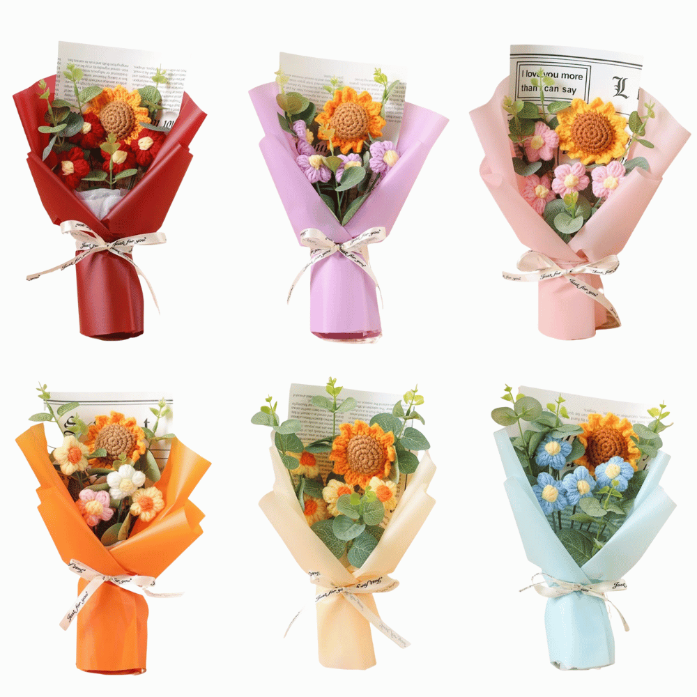 Szydełkowany bukiet kwiatów to połączenie rękodzieła, elegancji i trwałego uroku. Każdy kwiat został ręcznie wykonany z miękkiej włóczki, dzięki czemu zachowuje swój piękny wygląd przez wiele lat. Ten niezwykły bukiet to idealny wybór dla osób, które cenią oryginalność, estetykę i wyjątkowy charakter prezentów. Doskonały na urodziny, rocznicę, Dzień Matki, Walentynki lub jako ozdoba wnętrza.