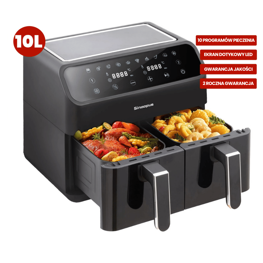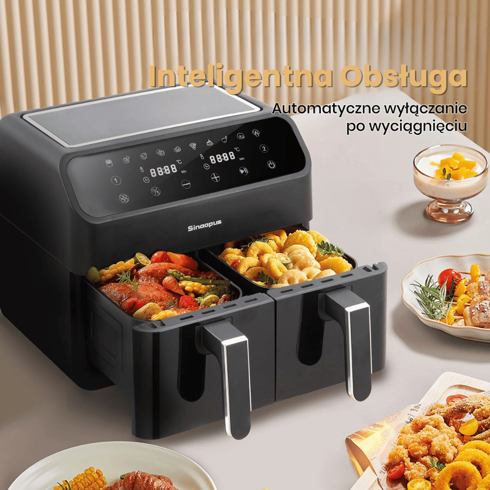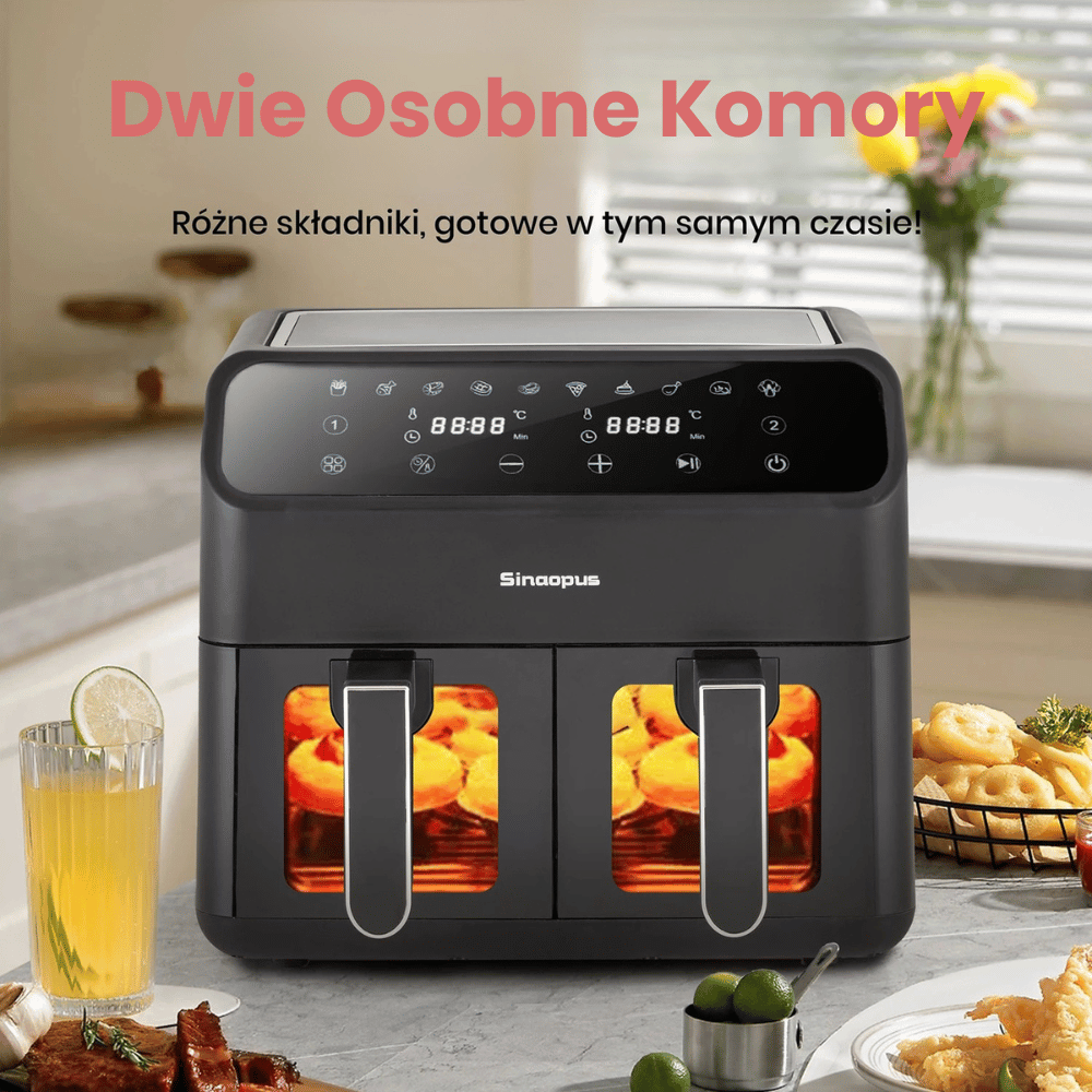 Gotuj zdrowiej, szybciej i smaczniej z naszym dwukomorowym Air Fryerem 10L!